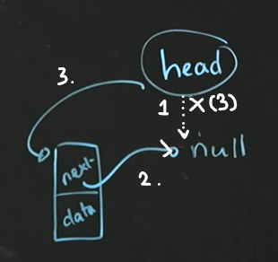node.next = head; // 2 새 node의 next가 현재 head가 가리키고 있는 곳을 가리키게 함