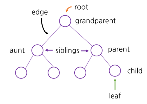 - 형제 노드(sibling): 같은 부모를 가지는 노드.
